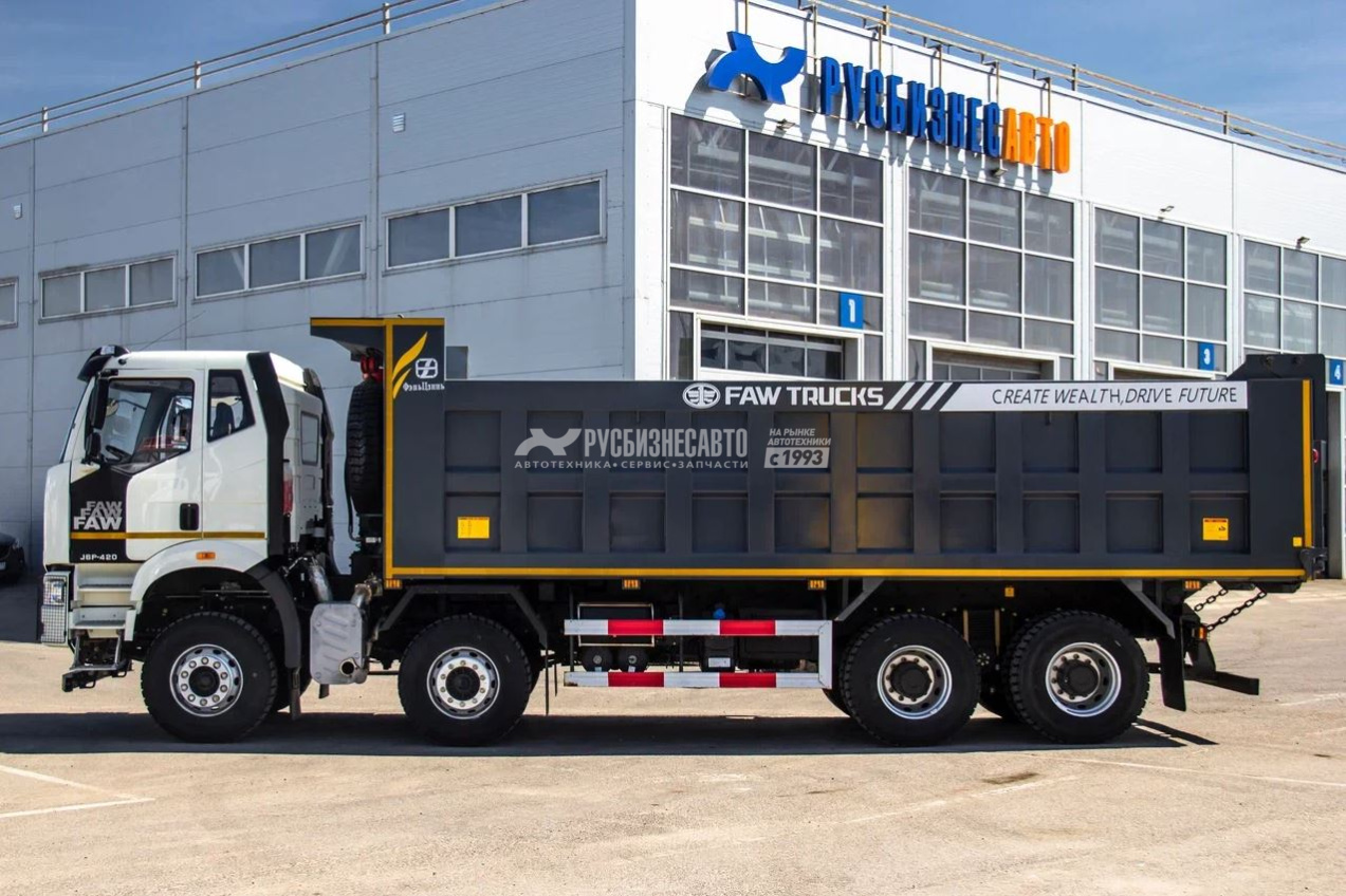 - Самосвал J6 3310 (8х4) — спецтехника усовершенствованной серии китайского автомобильного гиганта FAW. Отличается высокой надёжностью и невысокой стоимостью владения. - Двигатель 420 л.с. (CA6DM2-42E51), Евро 5 (мочевина). - Турбокомпрессор Holset (Великобритания). - ТНВД и топливные форсунки Bosch (Германия). - КПП - Механическая 12-ступенчатая, синхронизированная, с демультипликатором. - Кабина с одним спальным местом, кондиционер, кузов китайского производства. - Тип кузова П-образный, марка стали кузова K450, Толщина дна 7 мм, стенок - 5 мм. - Геометрические параметры кузова: 7 400 x 2 300 x 1 500мм, объем кузова 26 м3. - Эргономичный современный дизайн рабочего пространства водителя.