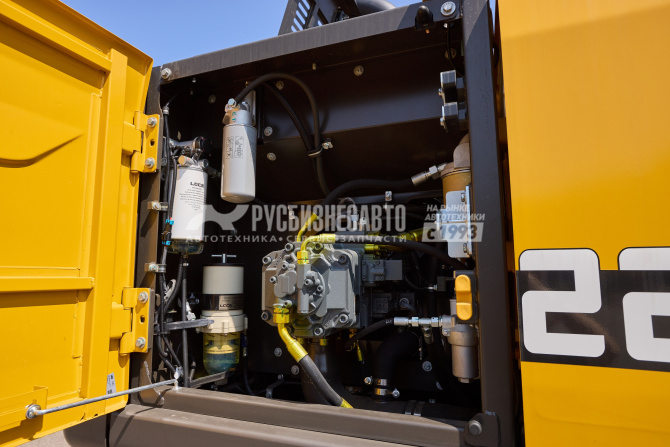 ZF, компонентами гидравлической системы Hengli и Bosch Rexroth, с электронными джойстиками. Оборудован новой кабиной с улучшенным обзором, новой приборной панелью с сенсорным экраном с камерой заднего вида. Двухпоточная гидролиния + линия ротации