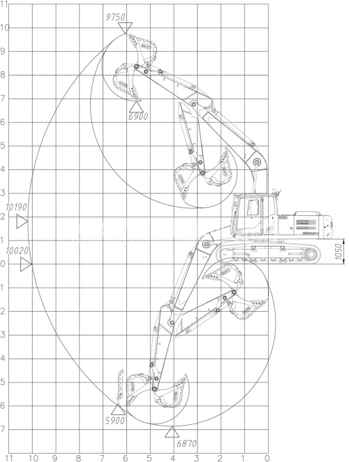 | Максимальный радиус копания, мм. | 10190 |