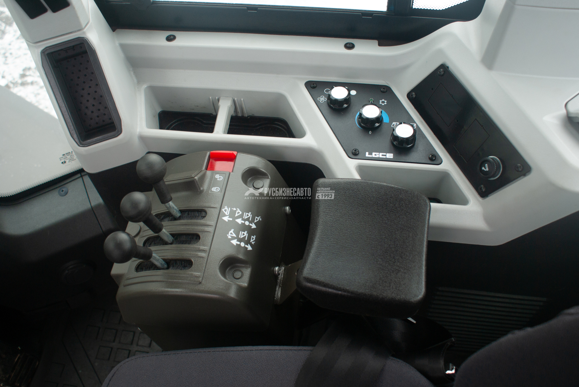- Регулируемая по углу наклона рулевая колонка. Аудиосистема. Новая приборная панель с ЖК дисплеем, переключатели и кнопки расположены на стойке кабины для удобства управления, дополнительные отсеки для хранения мобильного телефона и прочих вещей, охлаждаемый бокс.