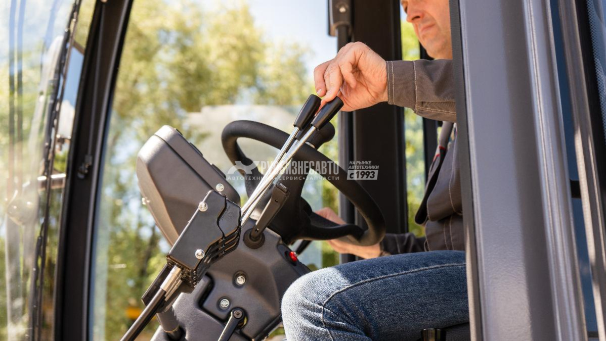 - Новые органы управления рабочим оборудованием - короткие рычаги с малым ходом, установленные на регулируемой рулевой колонке