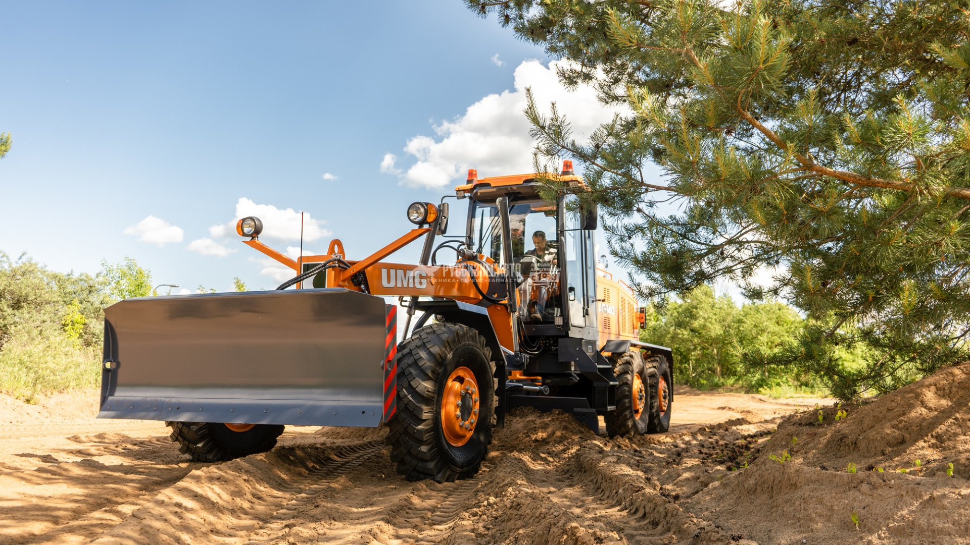 - Полноповоротный грейдерный отвал обеспечивает высокие технологические возможности автогрейдера