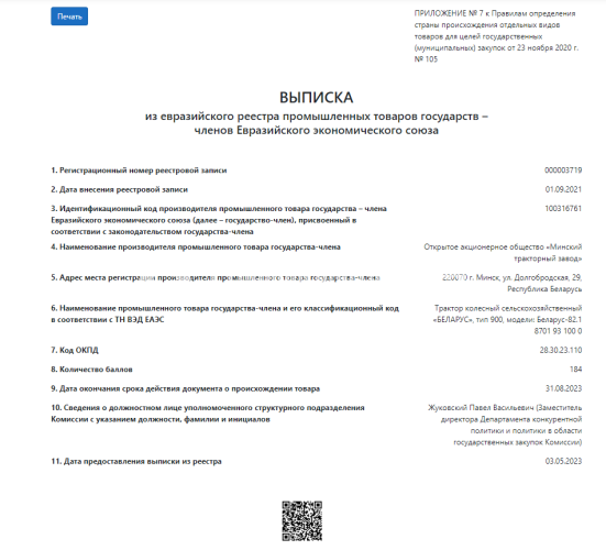 Производитель МТЗ